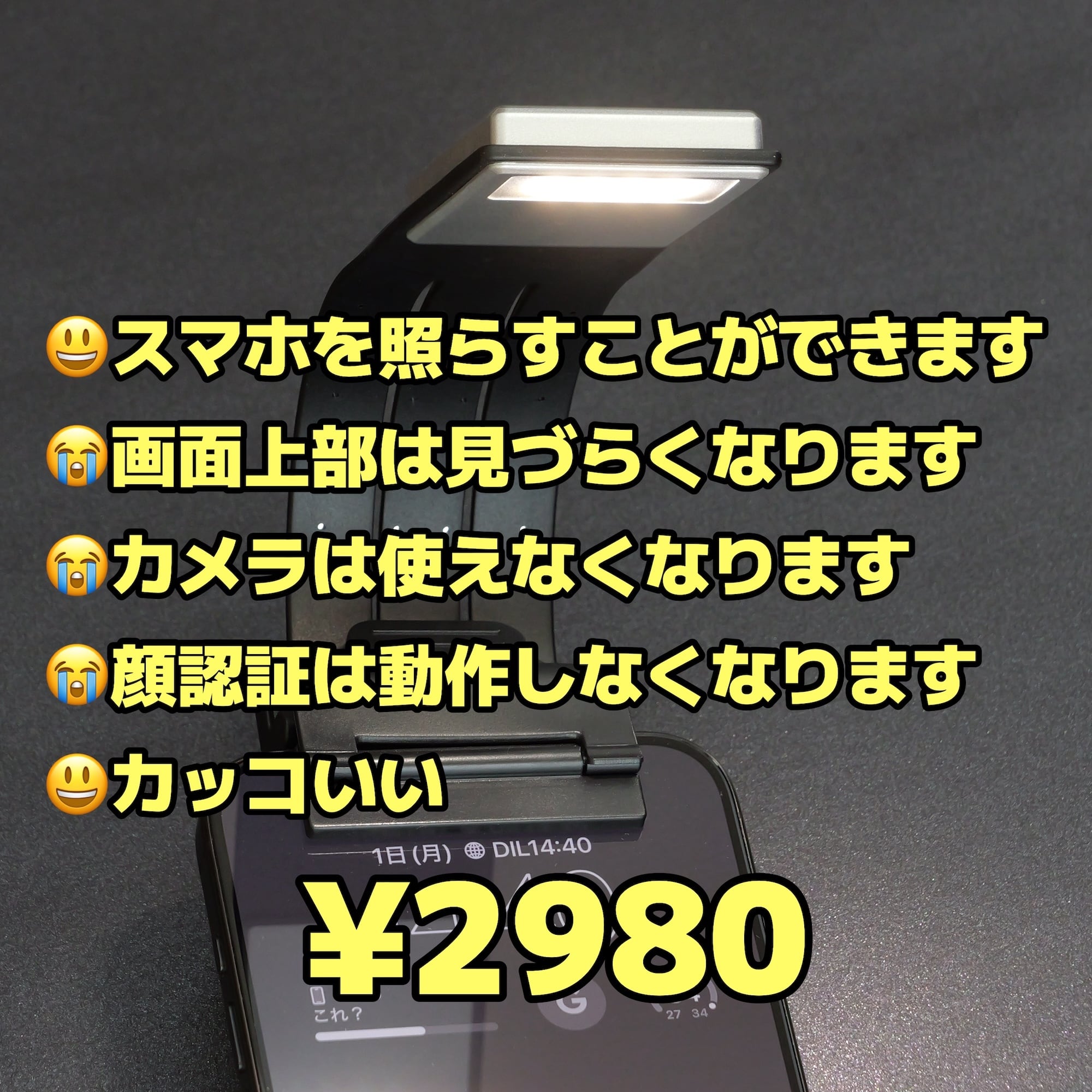 スマホを照らすことができるクリップ式LEDライトです!
